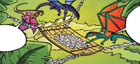 - Viele Drachen schlafen in Hängematten, die an je zwei Bäumen befestigt sind. Sie sind aus stabilen Ranken geflochten, mit Federn und Blüten gepolstert und so konstruiert, dass Drachen nicht herausfallen können.[18]