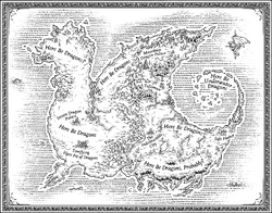 Nach dem Drachenangriff bildet das Dorf ein viele Flügelspannweiten breites Loch, das so schwarz vor Asche ist wie die Schuppen eines Nachtflüglers und sich als große, unregelmäßige Schneise durch das Gebiet zieht.[31]